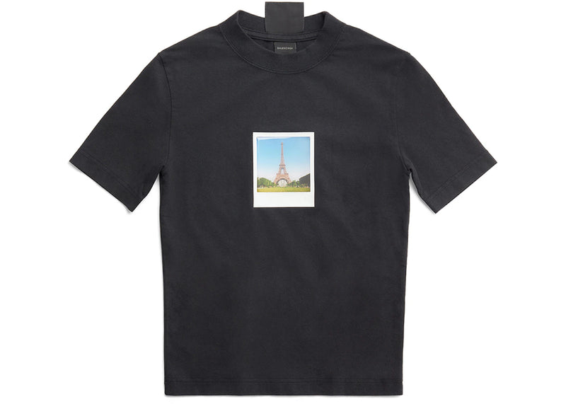 The Balenciaga Women's Paris By Day Tight Small Fit T-Shirt Black Faded is now available at Side Kicks!
