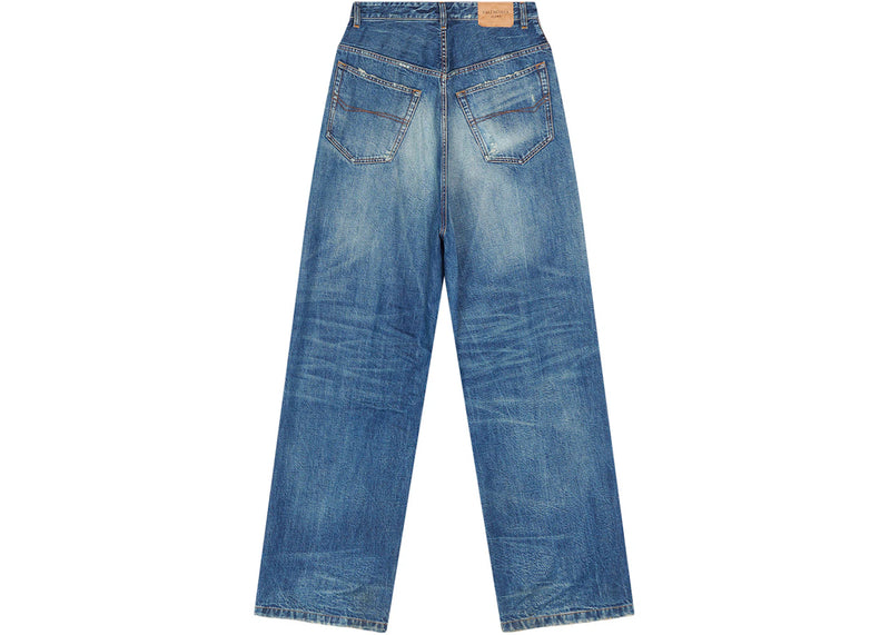 The Balenciaga Women's Pull-Up Vintage Denim Pants Blue is now available at Side Kicks!