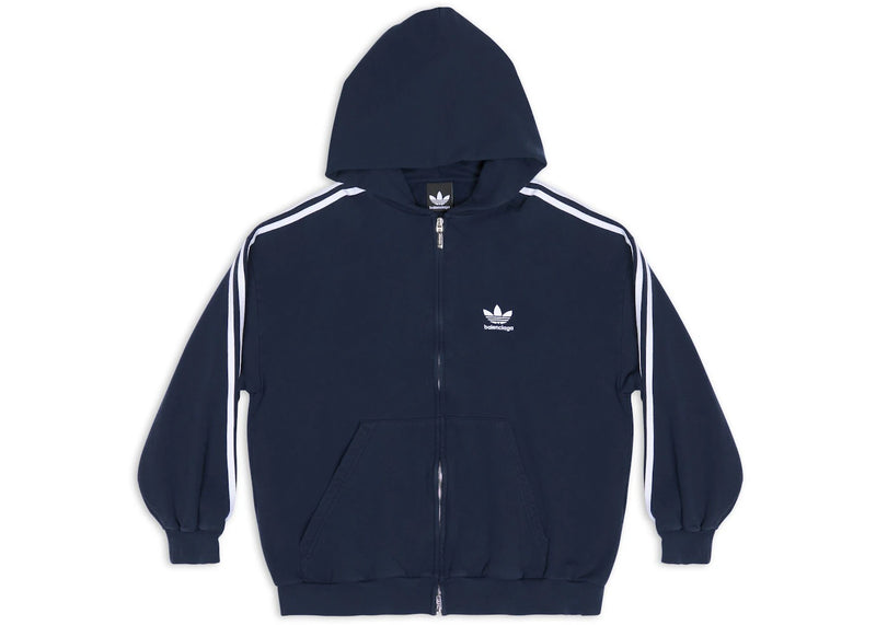 The Balenciaga x adidas Zip-Up Hoodie Small Fit Navy Blue is now available at Side Kicks!