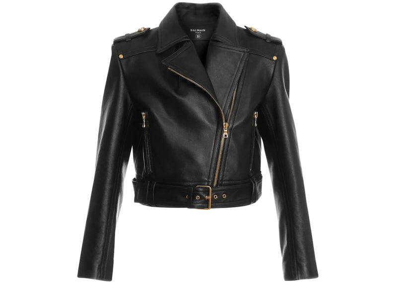 The Balmain Chain Quilted Leather Crop Jacket Black is now available at Side Kicks!