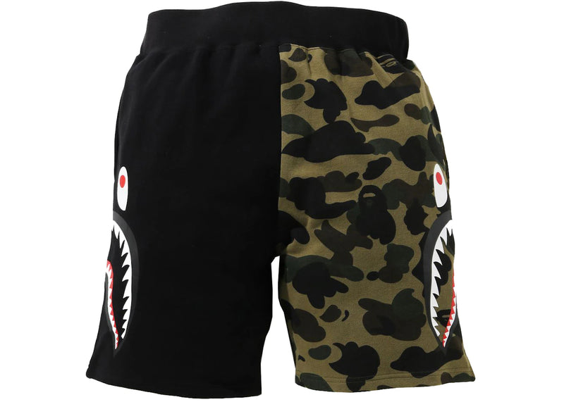 The BAPE 1st Camo Half Side Shark Sweat Shorts Green is now available at Side Kicks!