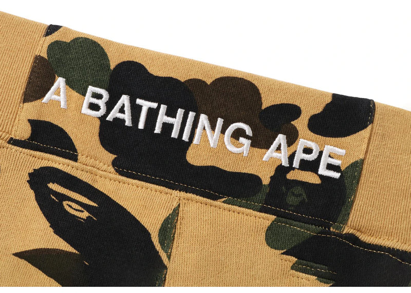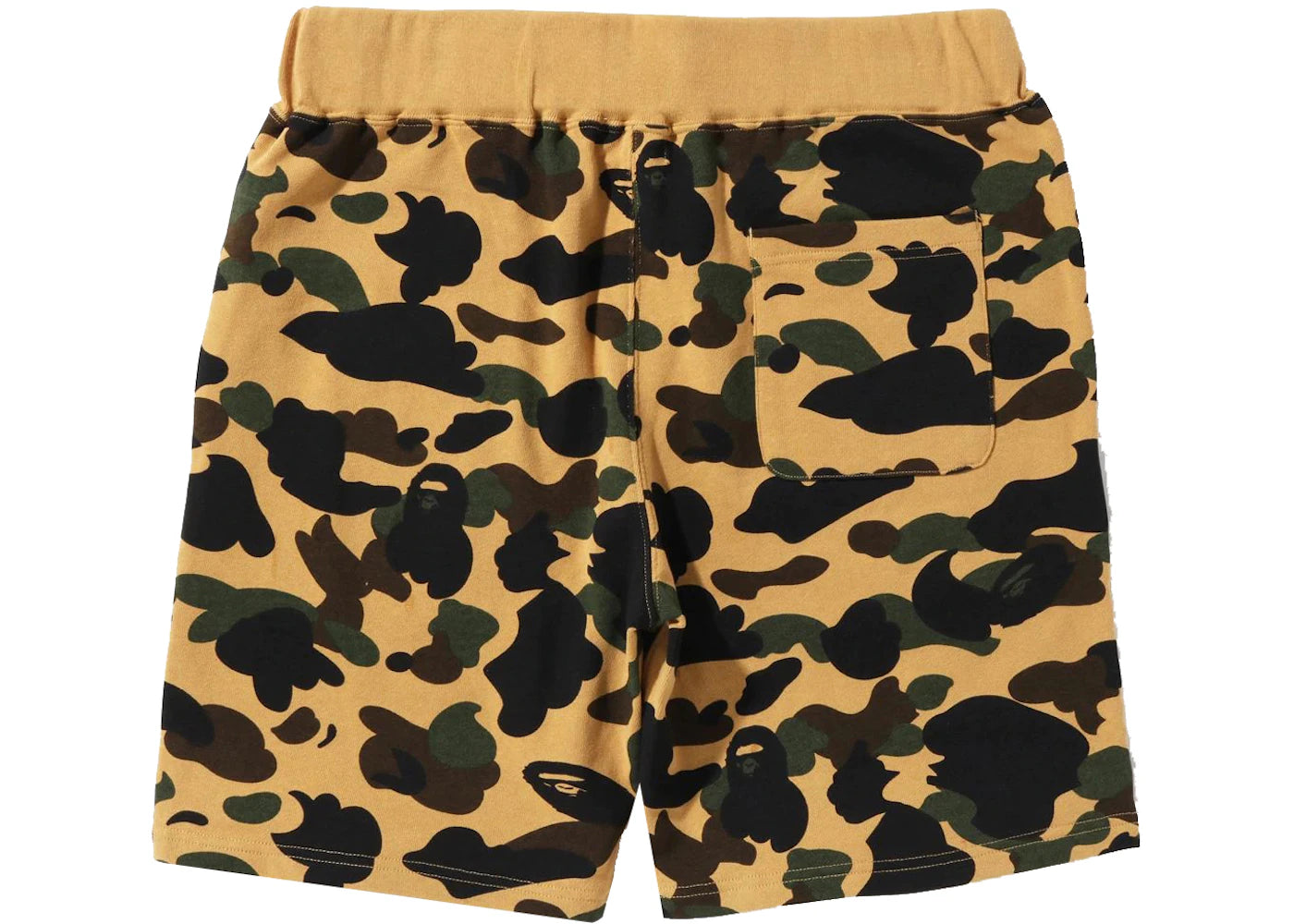 The BAPE 1st Camo Sweat Shorts (SS22) Yellow is now available at Side Kicks!