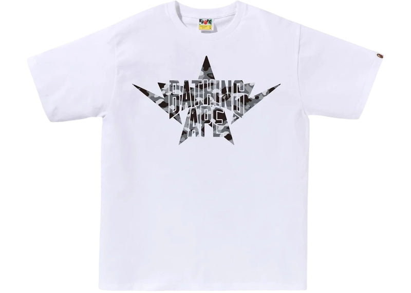 The BAPE 1st Camo Twin Sta Nyc Tee Tee White/Grey is now available at Side Kicks!