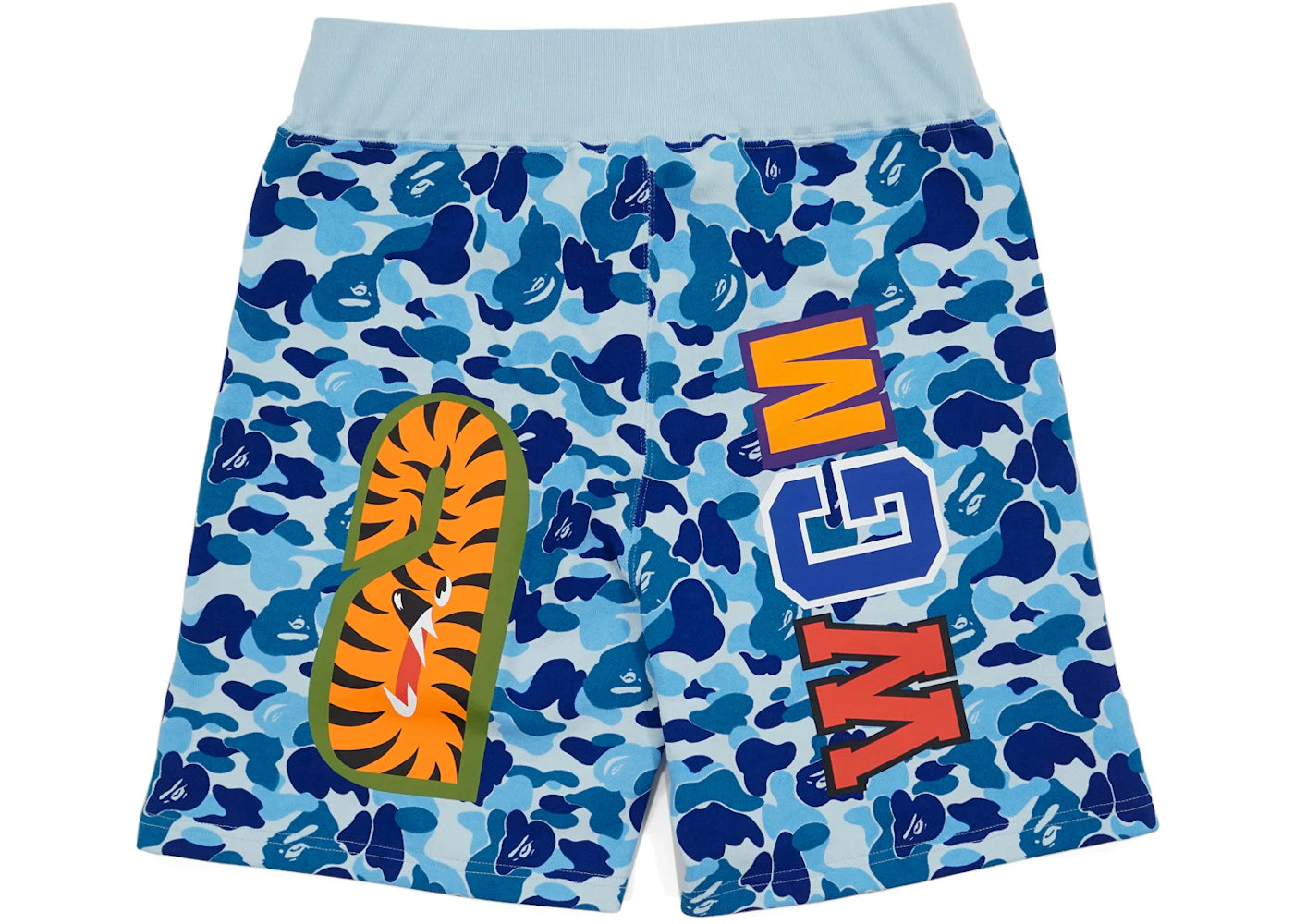 The BAPE ABC Camo WGM Print Shark Sweatshorts Light Blue is now available at Side Kicks!
