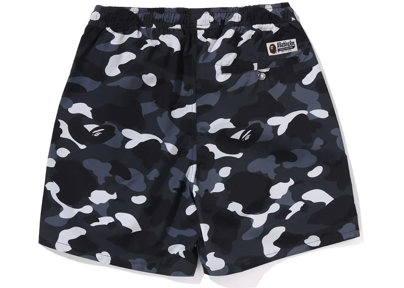 The BAPE City Camo Ape Head One Point Beach Shorts Black is now available at Side Kicks!