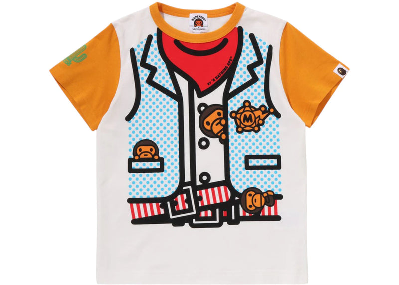 The BAPE Kids Baby Milo Sheriff Vest Print Tee Orange is now available at Side Kicks!