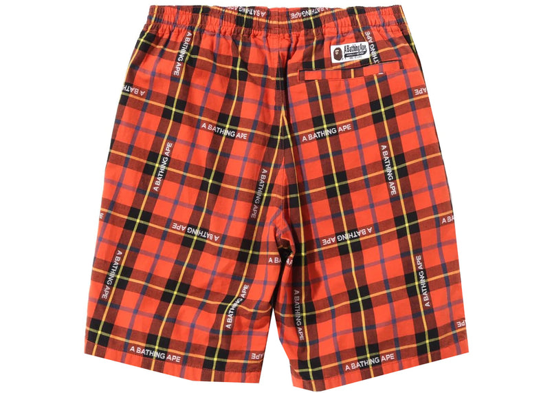 The BAPE Logo Check Shorts Red is now available at Side Kicks!