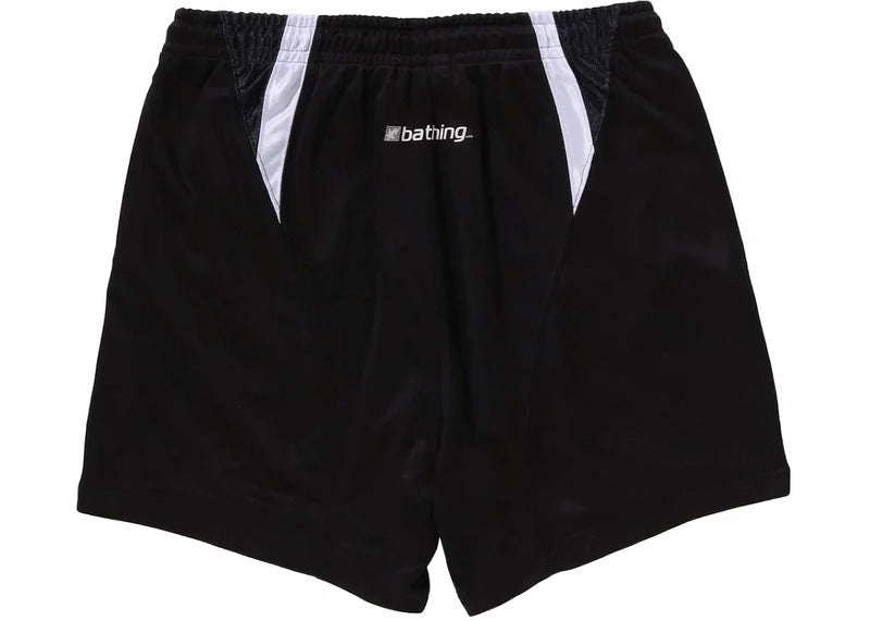 The BAPE Multi Logo Relaxed Fit Soccer Shorts Black is now available at Side Kicks!