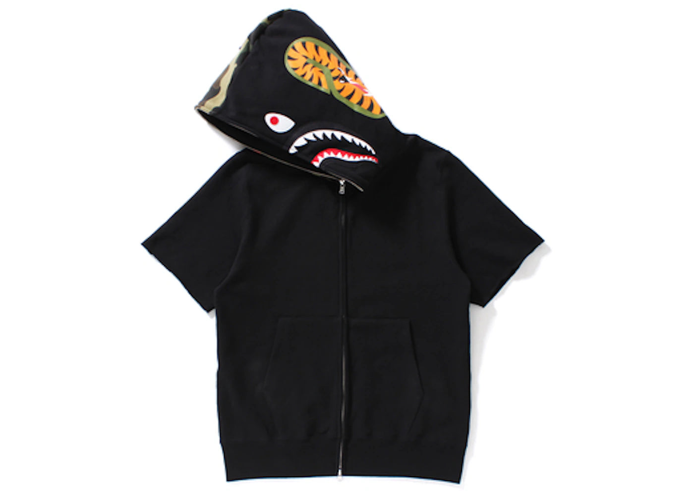 The BAPE Shark Short Sleeve Full Zip Hoodie Black is now available at Side Kicks!