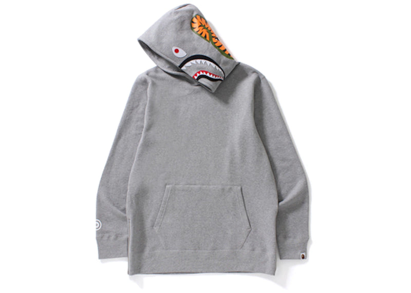 The BAPE Shark Side Zip Wide Long Length Pullover Hoodie Gray is now available at Side Kicks!