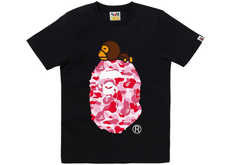 The BAPE Women's ABC Camo Milo On Big Ape Tee Black/Pink is now available at Side Kicks!