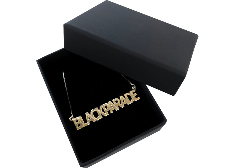 The Beyonce Black Parade Nameplate Necklace by Melanie Marie Gold is now available at Side Kicks!