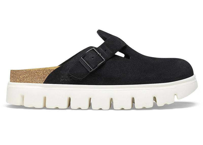 The Birkenstock Boston Chunky Suede Black (Narrow) (Women's) is now available at Side Kicks!
