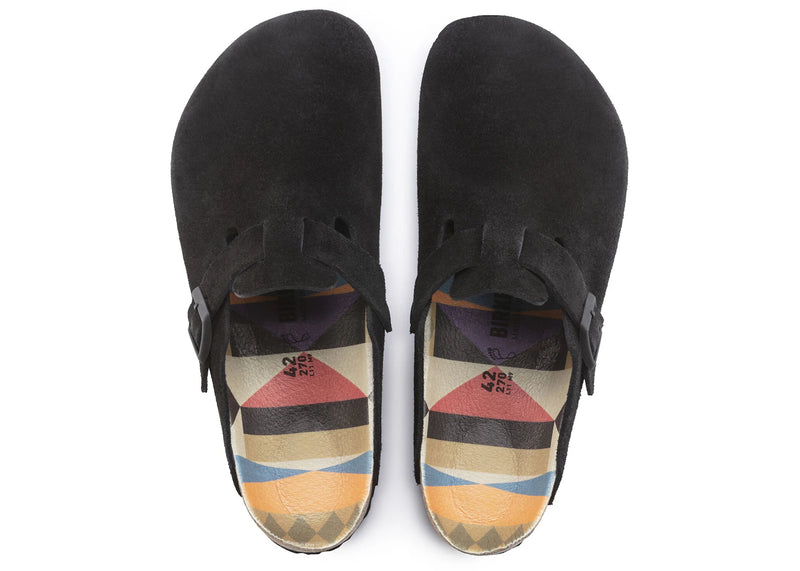 Birkenstock Boston Suede Black Pattern Footbed