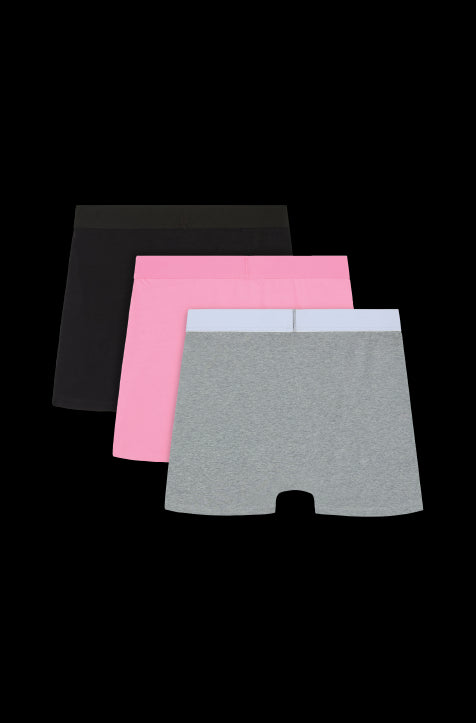 The boxers are made of 95% organic cotton and 5% elastane for comfort and flexibility. Sold as a 3-pack, including two black and one heather gray pair. Released on {date}, the boxers are available now at Side Kicks.