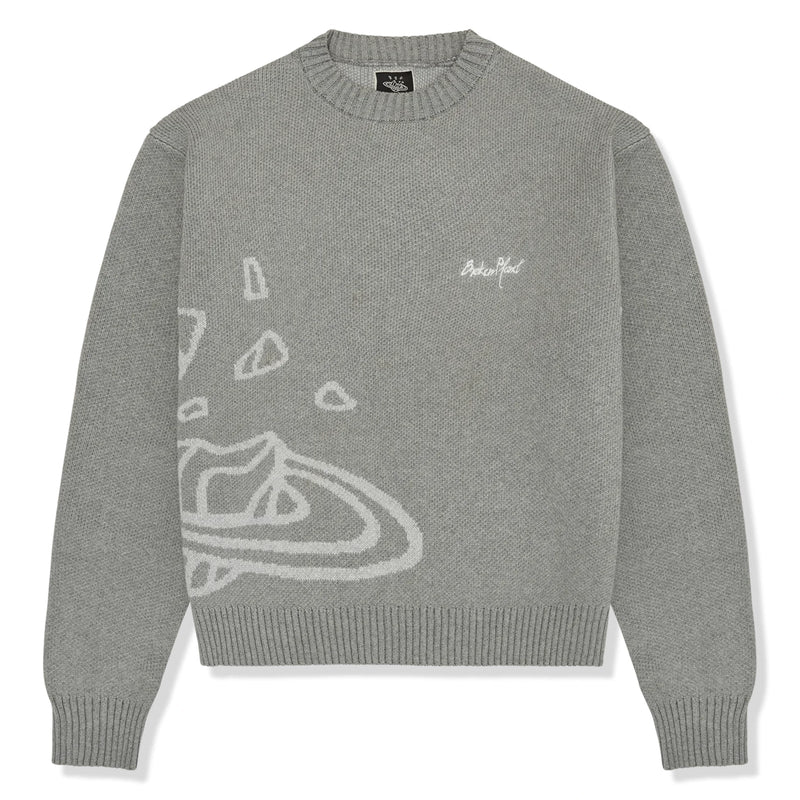 The Broken Planet Heather Grey Planet Knit Sweatshirt is now available at Side Kicks!
