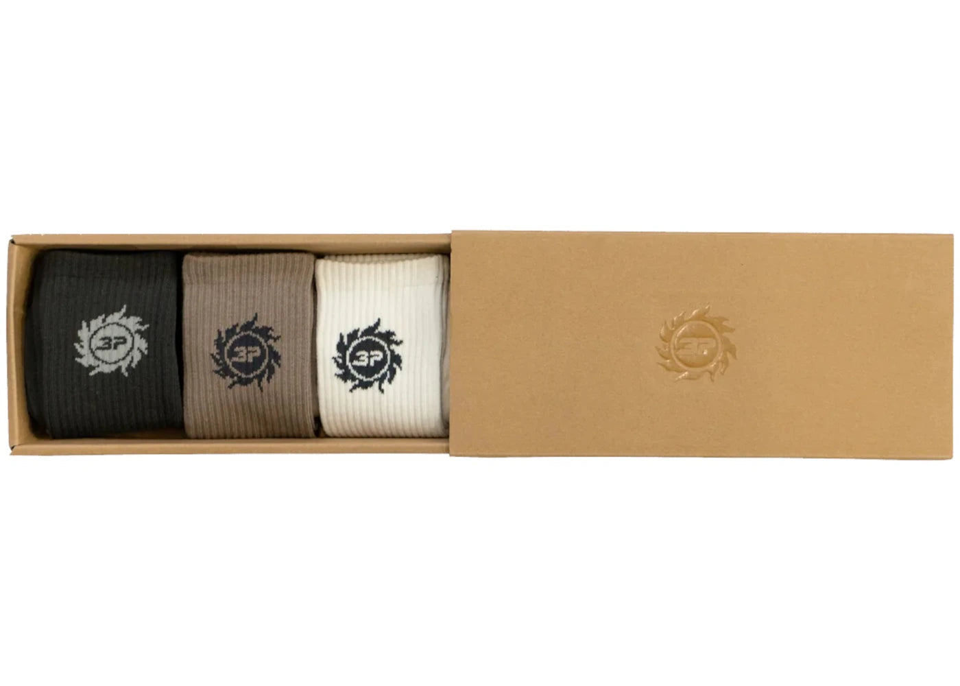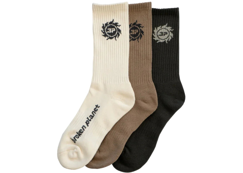 The Broken Planet Logo Socks (3 Pack) Cinder Brown/Vanilla White/Soot Black is now available at Side Kicks!