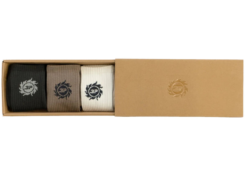 Broken Planet Logo Socks (3 Pack) Cinder Brown/Vanilla White/Soot Black