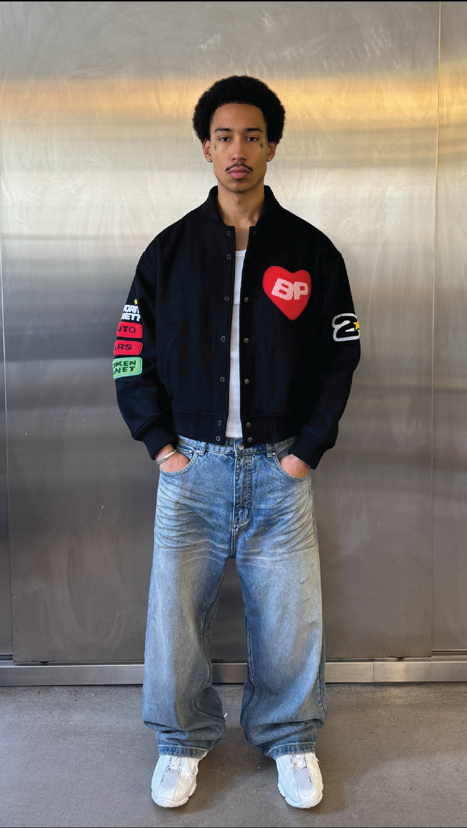 The Broken Planet Luv My Planet Varsity Jacket is now available at Side Kicks!