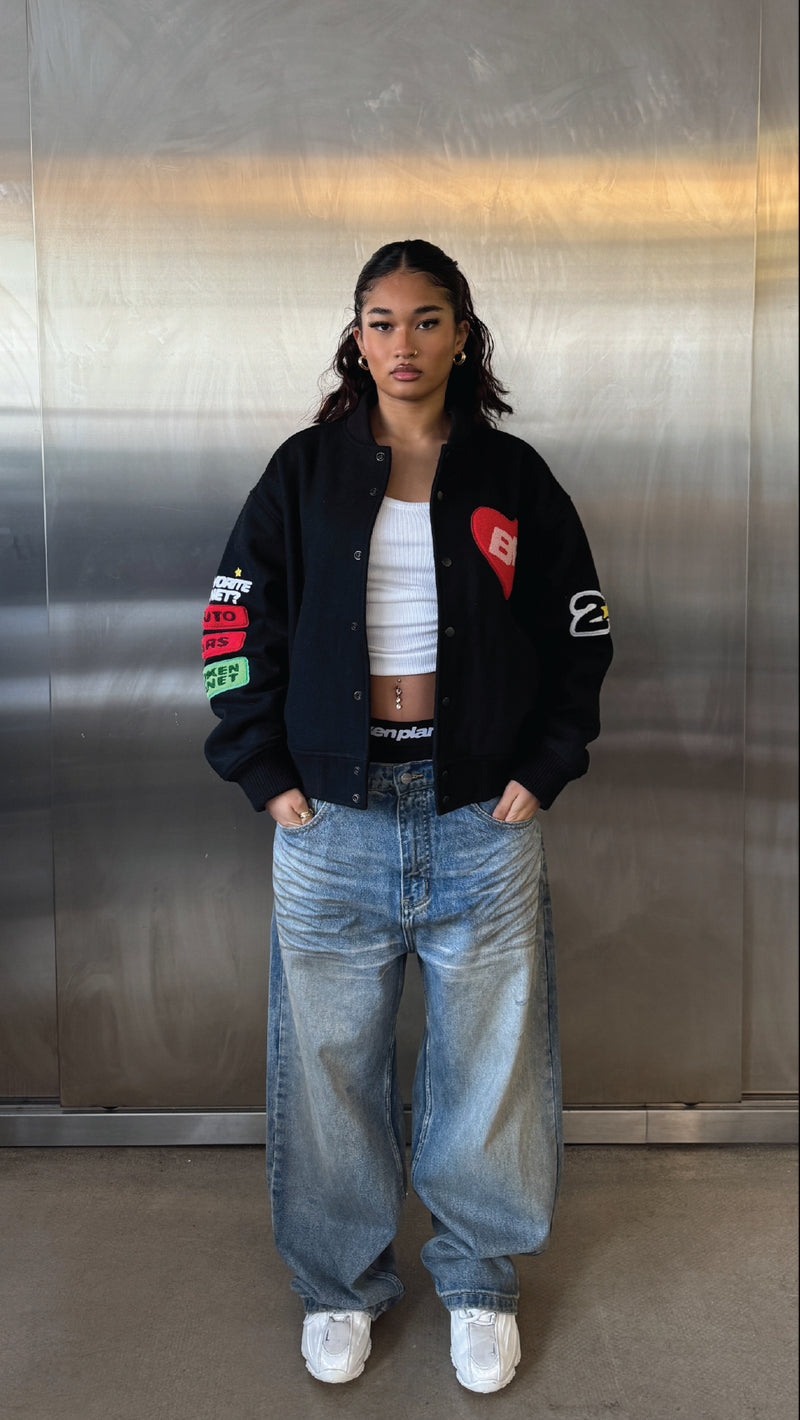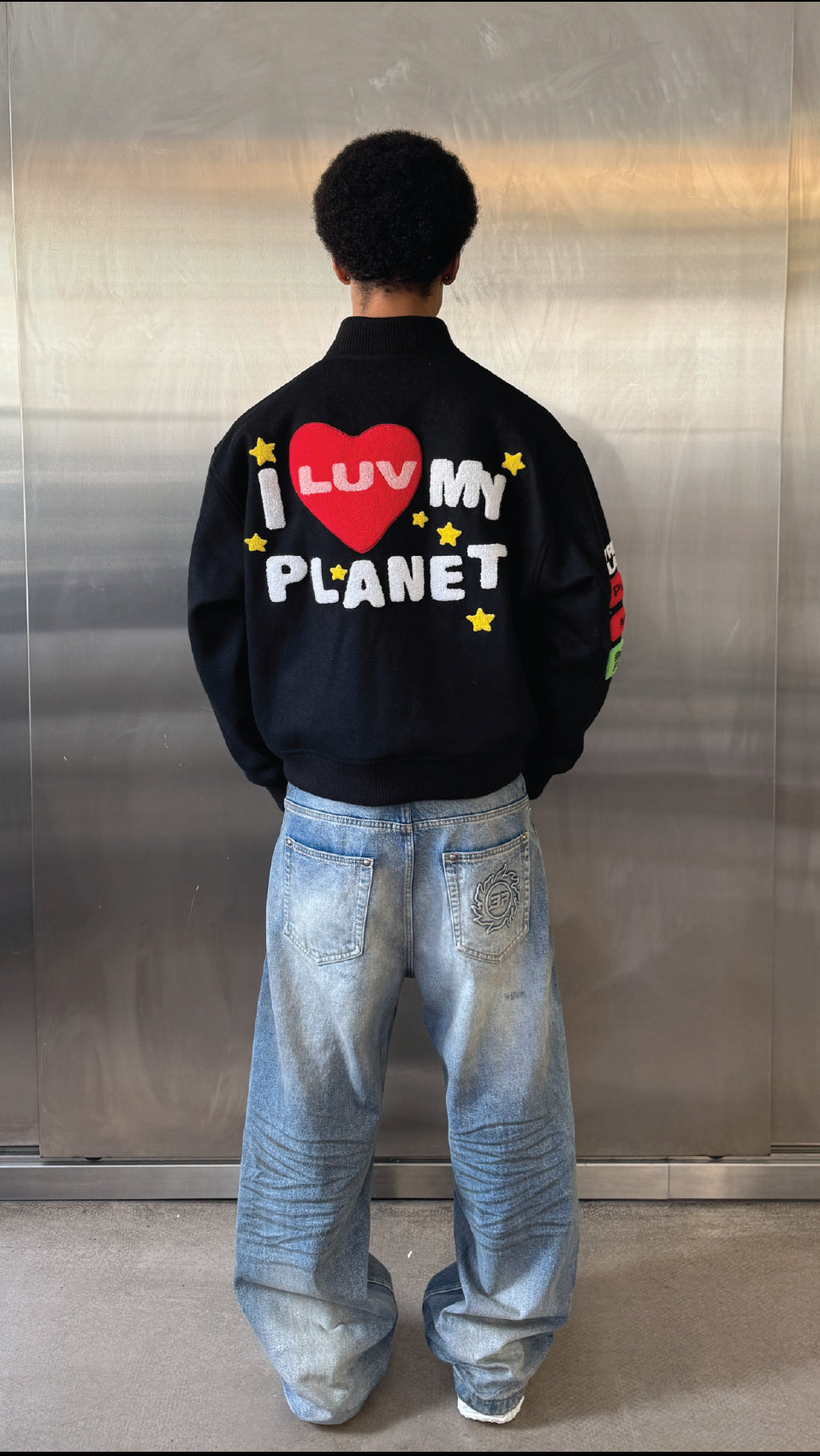 Style Code Broken-Planet-luv-my-planet-varsity-jacket