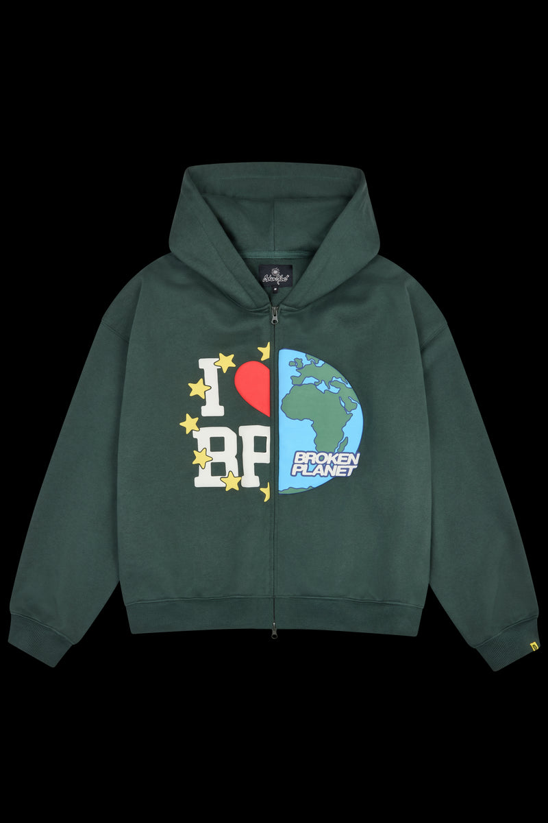 Broken Planet My Planet Zip-Up Hoodie Emerald Green