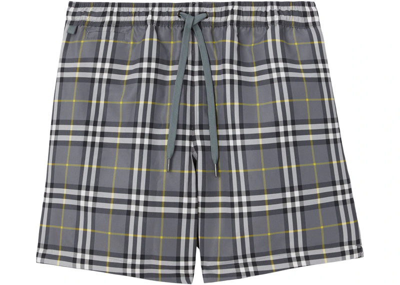 The Burberry Check Drawcord Swim Shorts Storm Grey is now available at Side Kicks!