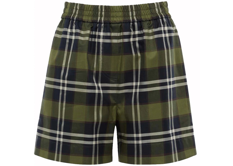 The Burberry Check Shorts Dark Olive Green is now available at Side Kicks!