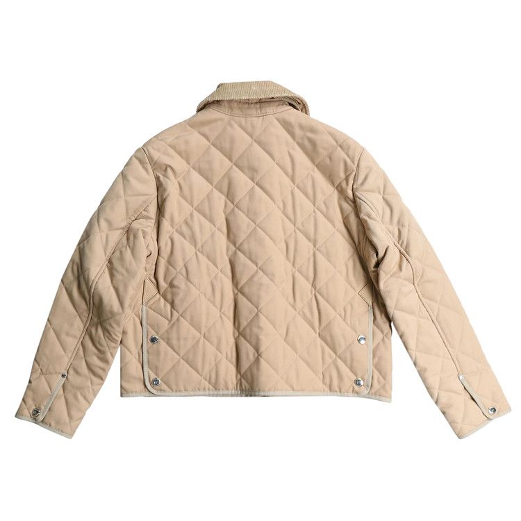 The Burberry Check Wool Blend Quilted Jacket Soft Fawn is now available at Side Kicks!