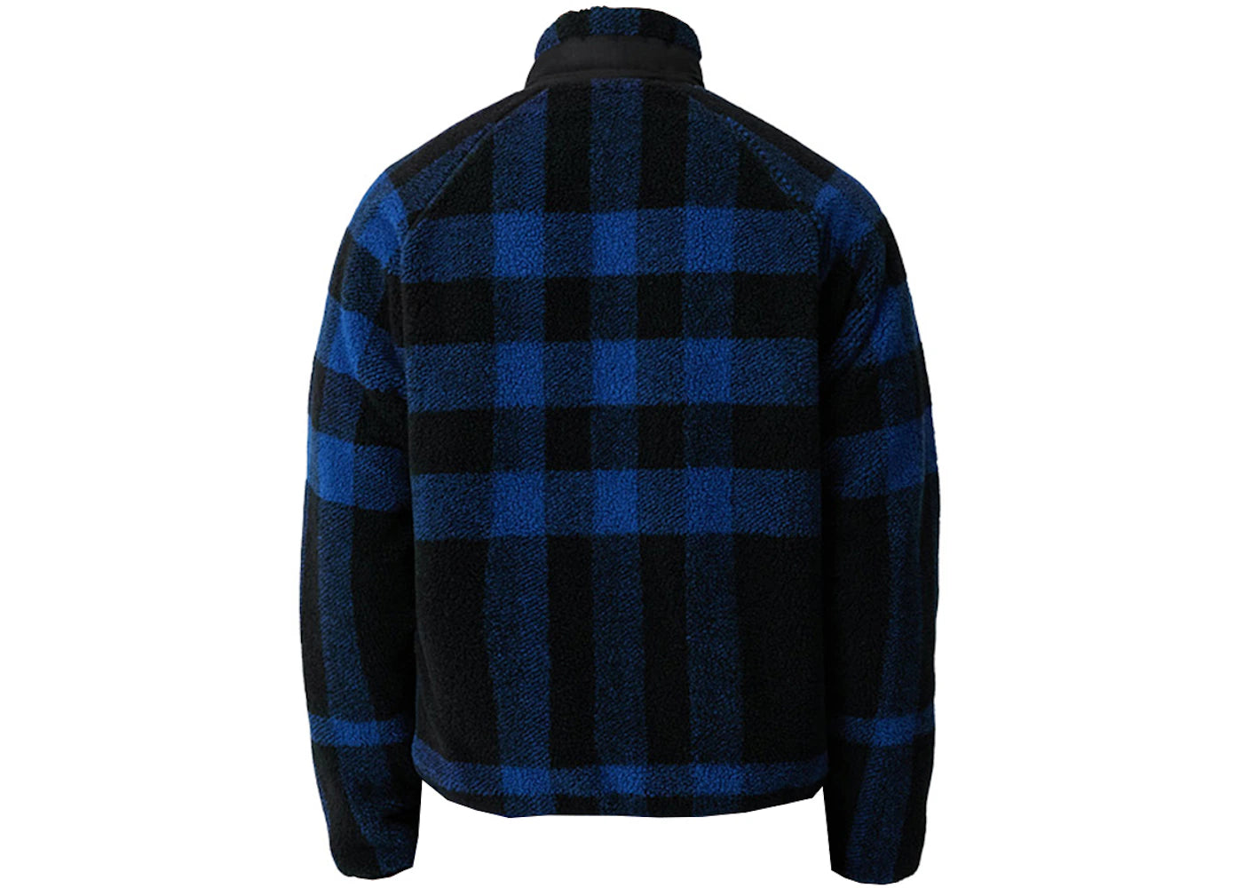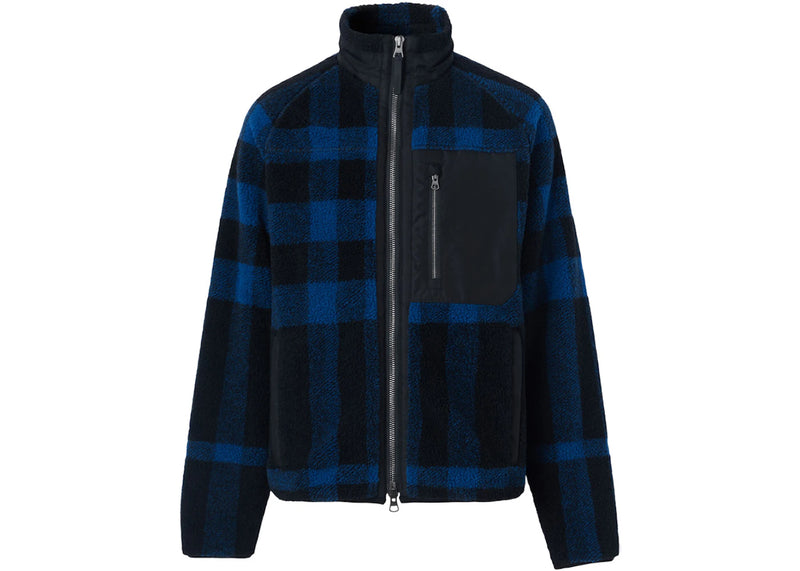 The Burberry Exploded Check Fleece Funnel Neck Jacket Deep Royal Blue/Black is now available at Side Kicks!