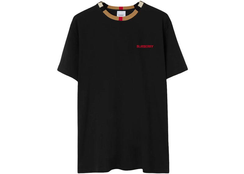 The Burberry Icon Stripe Trim Cotton T-shirt Black is now available at Side Kicks!