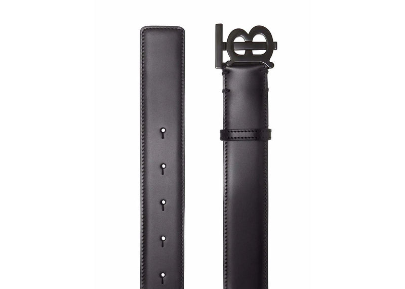 The Burberry Leather TB Monogram Buckle Belt Black/Orange is now available at Side Kicks!