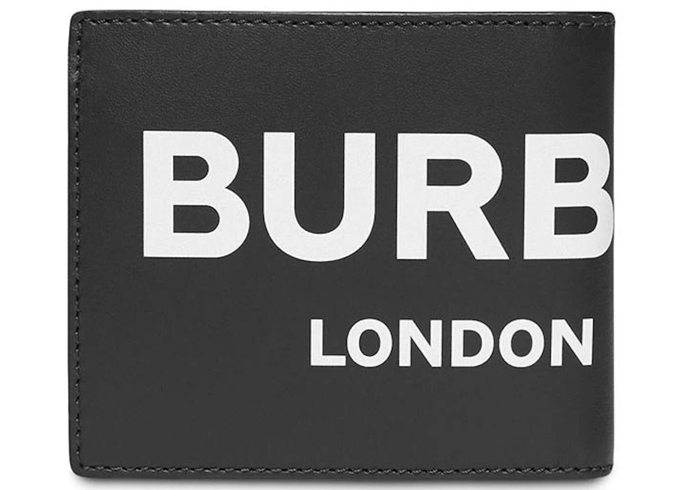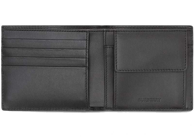 Burberry Logo Print Leather International Bifold Wallet 8 Slot Black