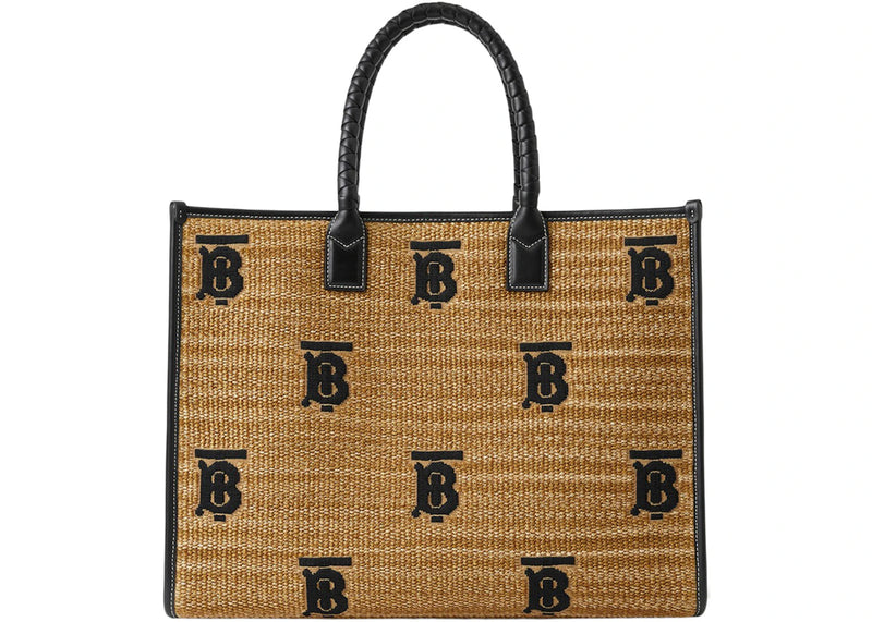 The Burberry Medium Freya Tote Natural/Black is now available at Side Kicks!