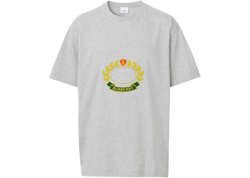 The Burberry Oak Leaf Crest Cotton Oversized T-Shirt Pale Grey Melange is now available at Side Kicks!