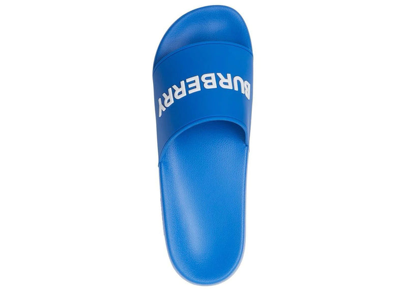 The Burberry Pool Slides Blue White is now available at Side Kicks!