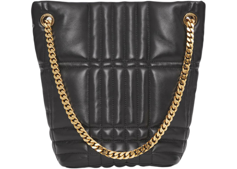 The Burberry Quilted Leather Small Lola Bucket Bag Black/Gold-tone is now available at Side Kicks!