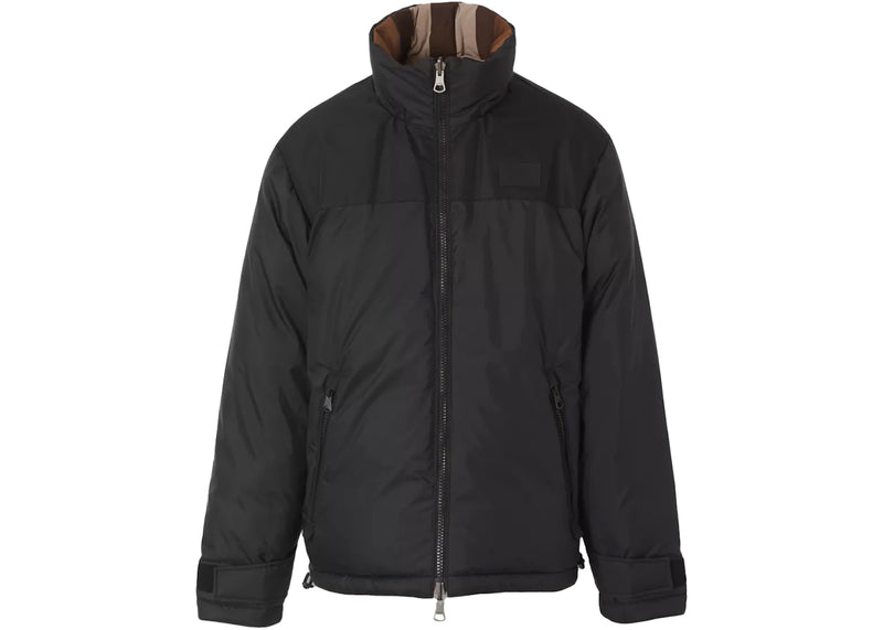 The Burberry Reversible Check Nylon Puffer Jacket Dark Birch Brown is now available at Side Kicks!