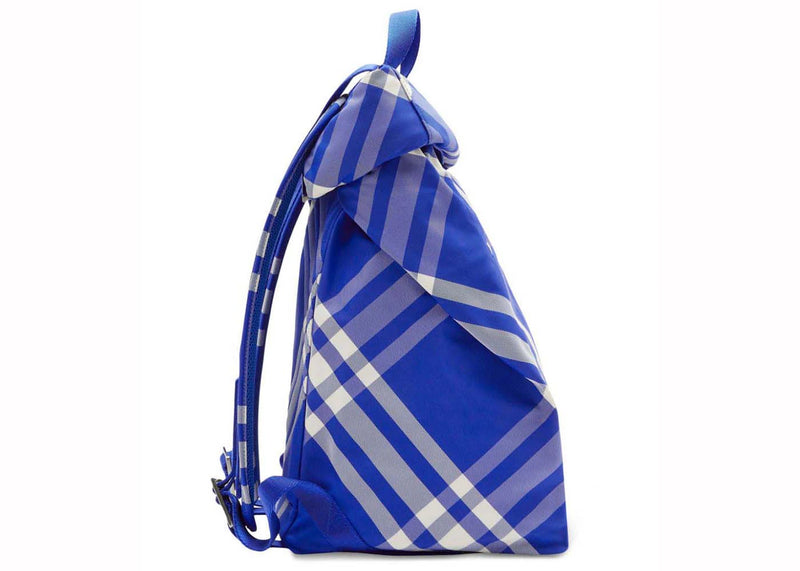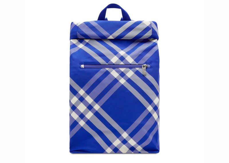 The Burberry Roll Jacquard Checked Backpack Blue/White is now available at Side Kicks!