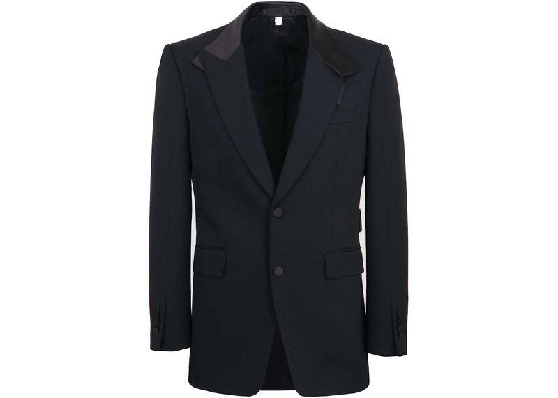 The Burberry Satin Lapel Wool Tailored Jacket Black is now available at Side Kicks!