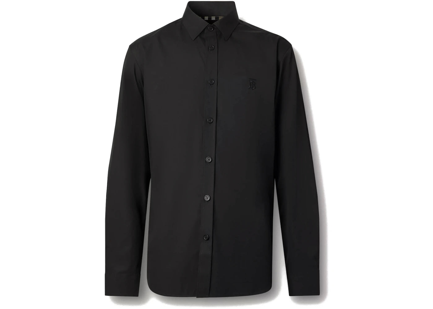 The Burberry Slim Fit Monogram Motif Stretch Cotton Poplin Shirt Black is now available at Side Kicks!