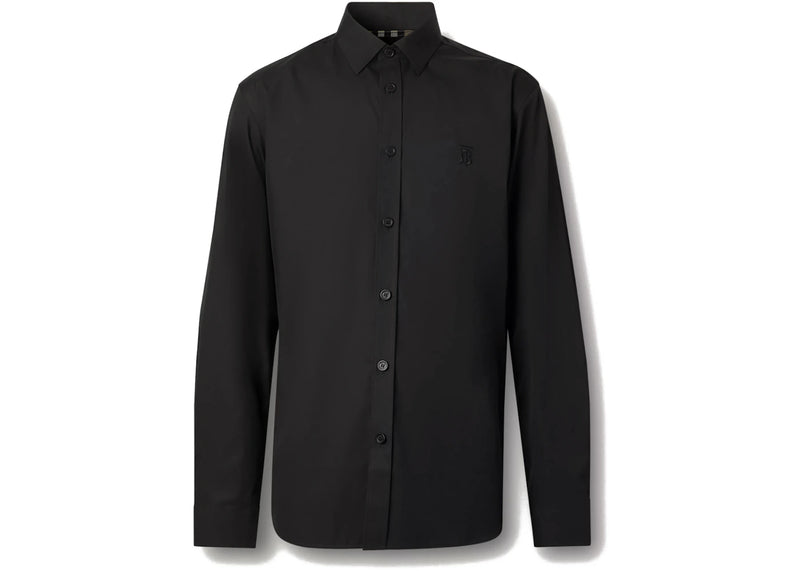 Burberry Slim Fit Monogram Motif Stretch Cotton Poplin Shirt Black