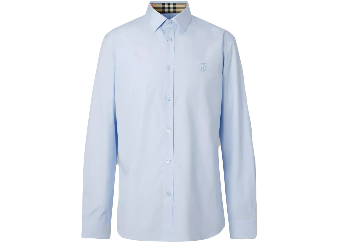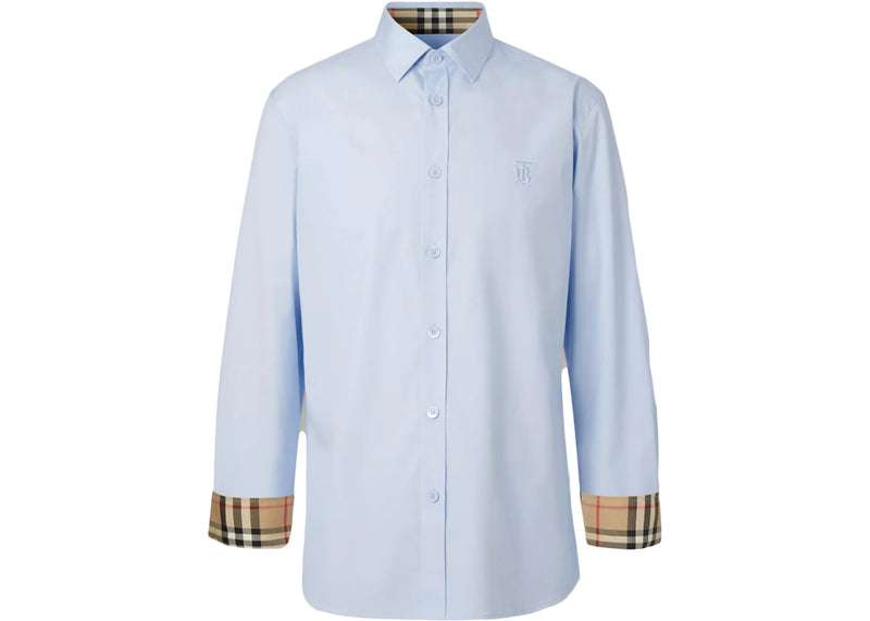 The Burberry Slim Fit Monogram Motif Stretch Cotton Poplin Shirt Soft Cornflower Blue is now available at Side Kicks!