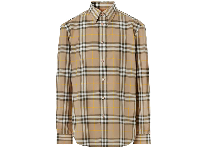 The Burberry Tartan Motif Cotton Shirt Beige is now available at Side Kicks!