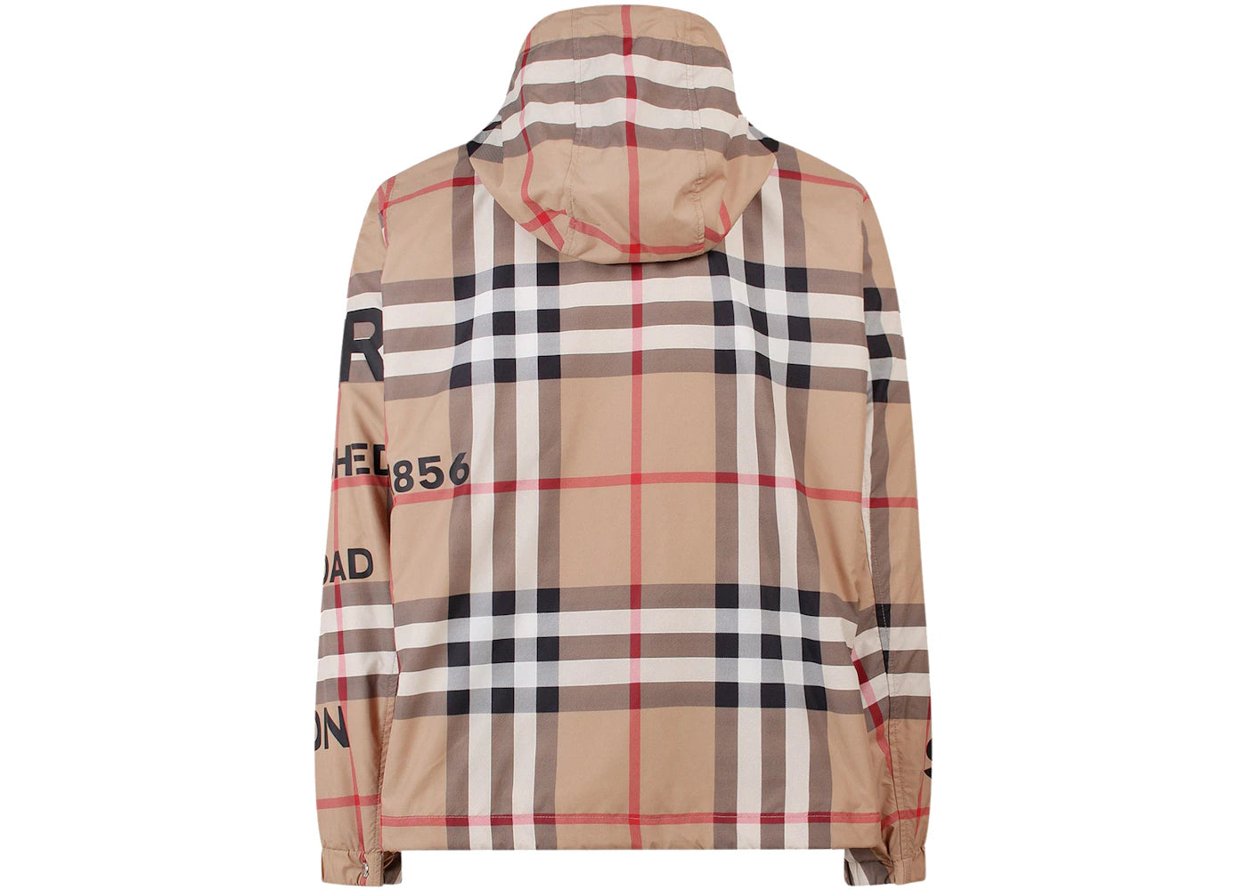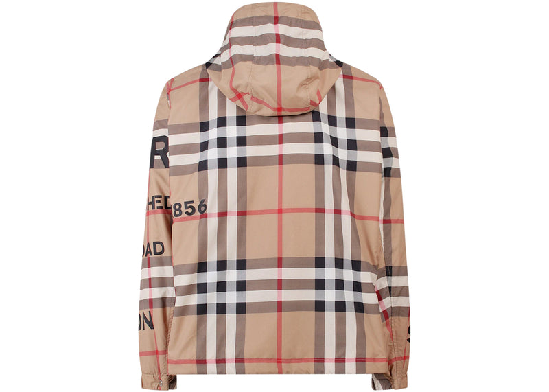 The Burberry Tartan Motif Nylon Jacket Beige is now available at Side Kicks!