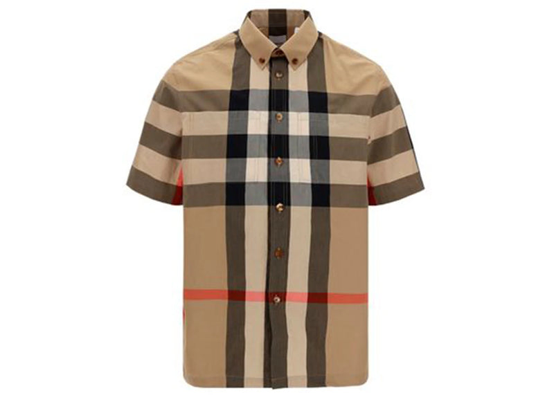 The Burberry Thames Large Check Short Sleeve Shirt Archive Beige is now available at Side Kicks!
