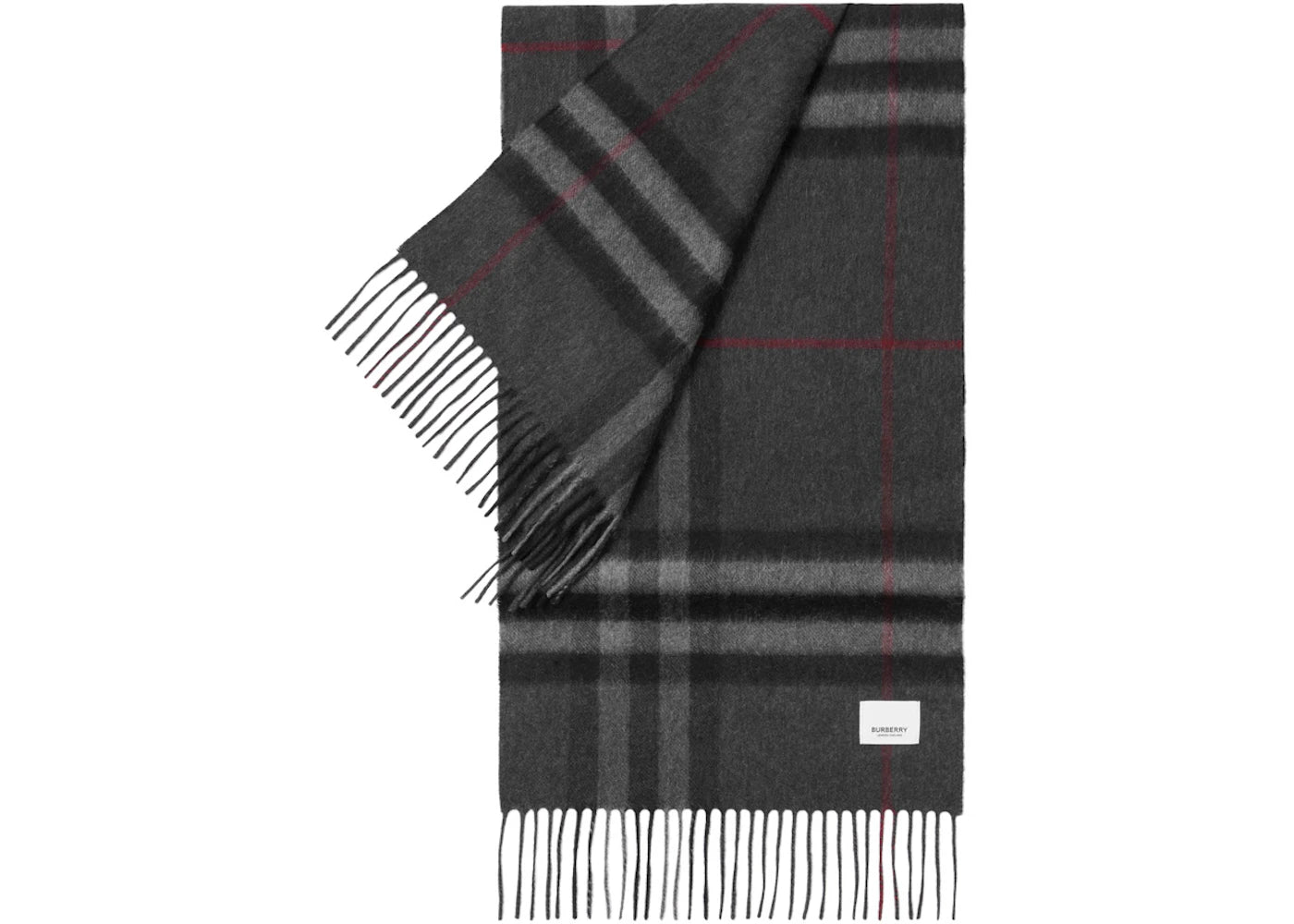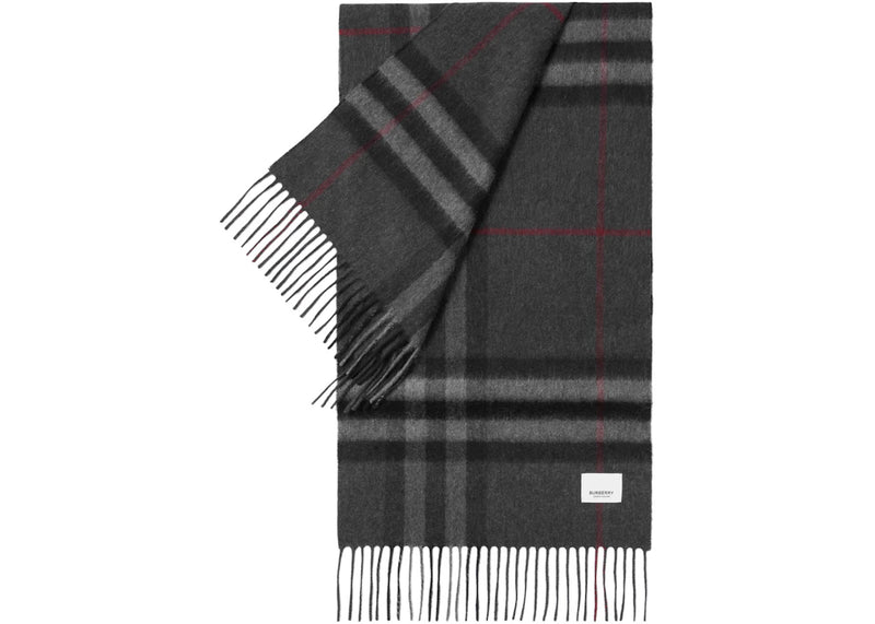 The Burberry The Classic Check Cashmere Scarf Charcoal is now available at Side Kicks!