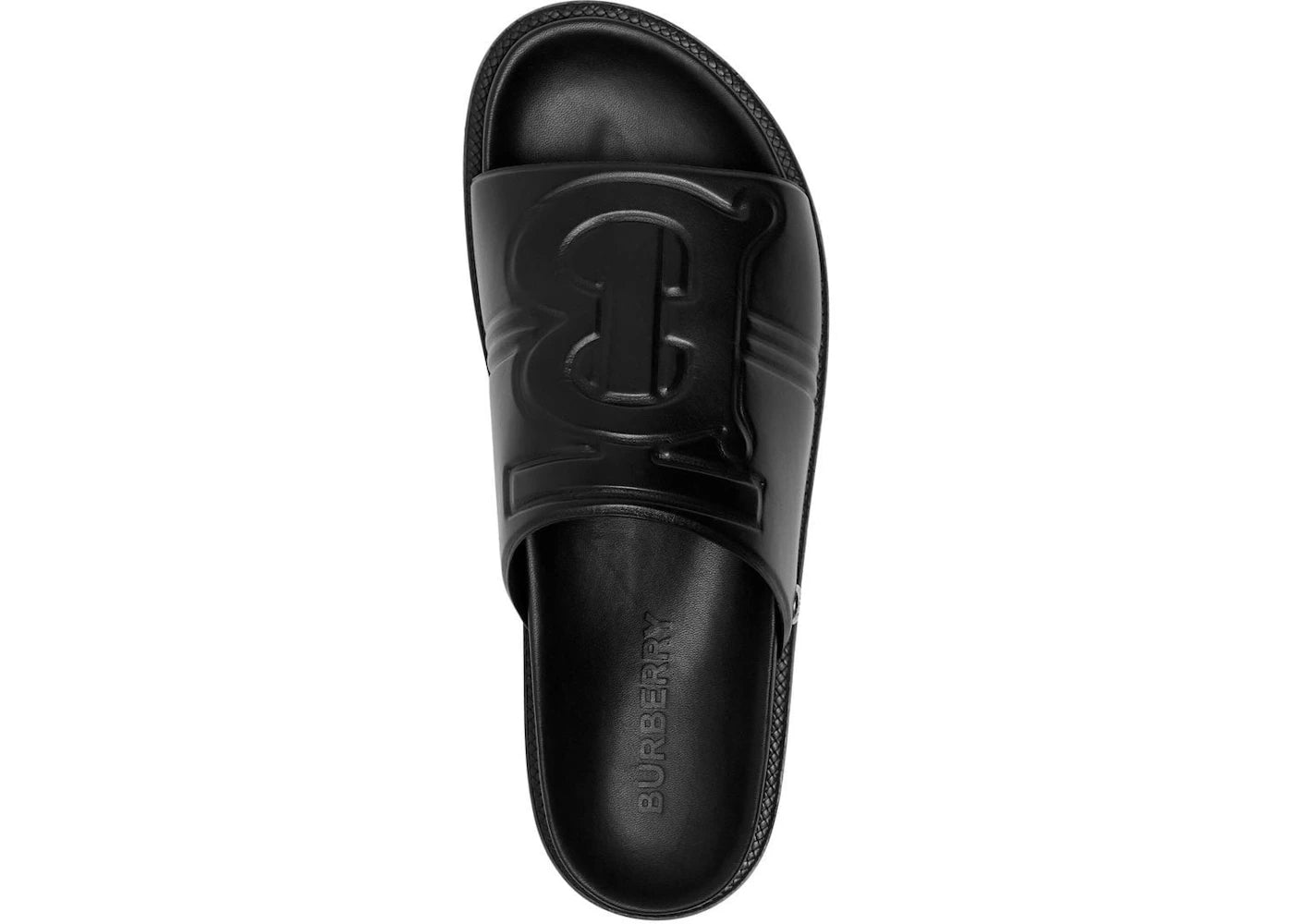 The Burberry Thornton Leather Slides Black is now available at Side Kicks!