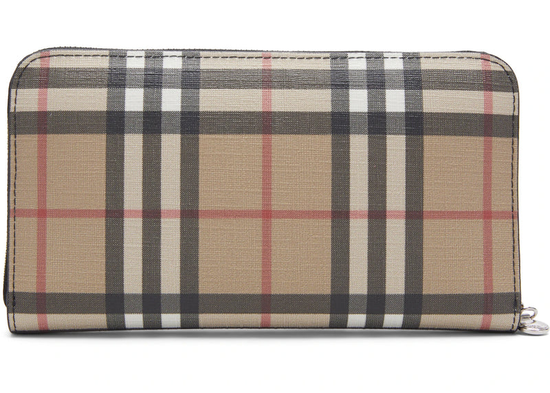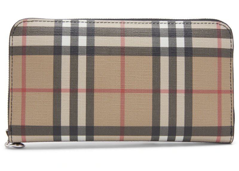 Burberry Vintage Check and Leather Ziparound Wallet 12 Slot Black