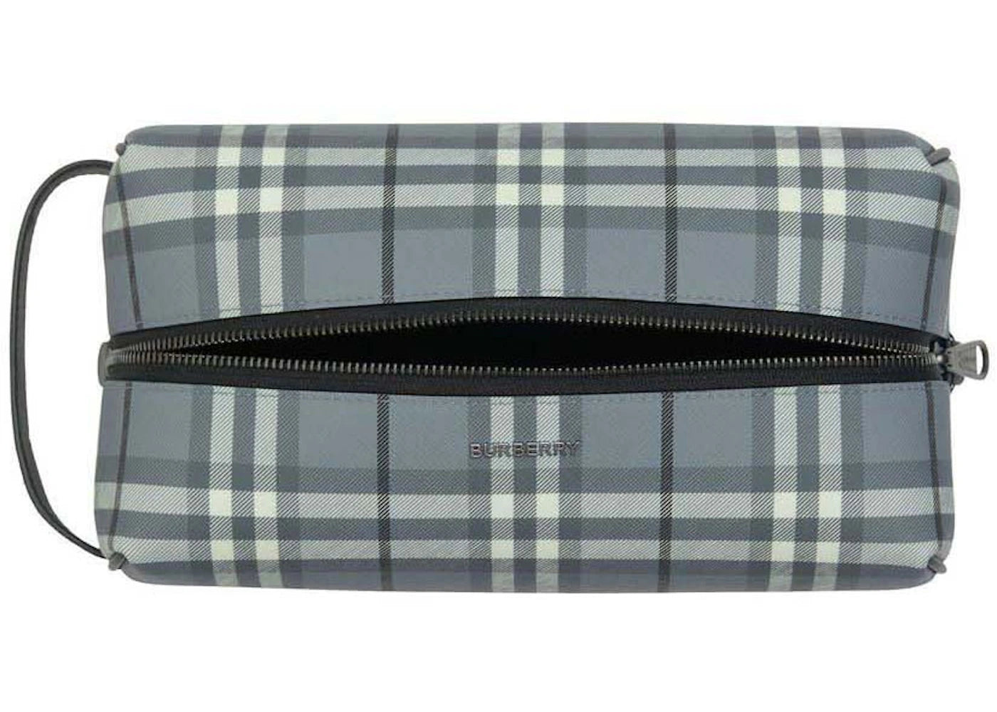 The Burberry Vintage Check Print Wash Bag Light Grey is now available at Side Kicks!