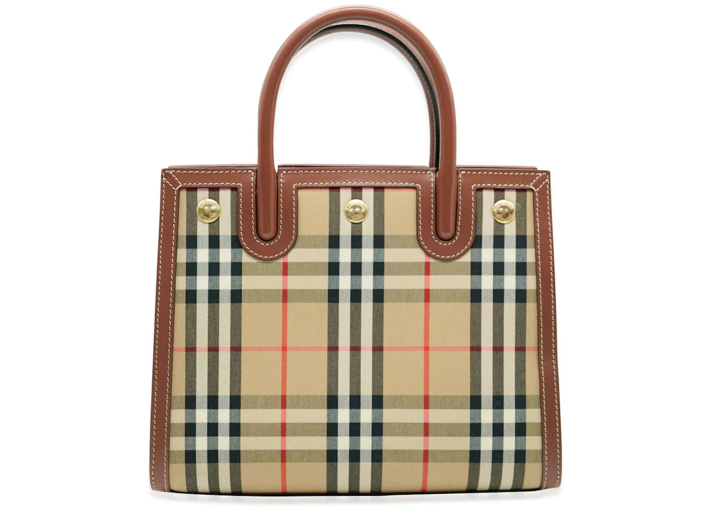 The Burberry Vintage Check Two-handle Title Bag Mini Archive Beige is now available at Side Kicks!